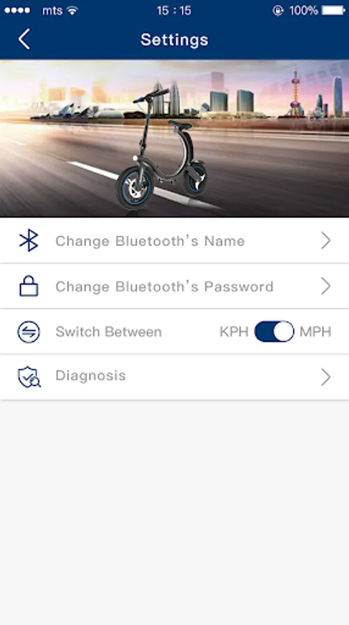 You can use the App to adjust some driving features (depending on model), change the name and password of the electric vehicle, and change the speed unit.