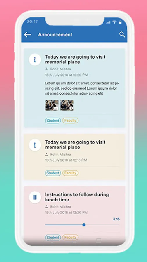A Pool between Student, Parent, Teacher & Admin :Online tests, spot results, Calendar, Live notice board, discussion and many more..