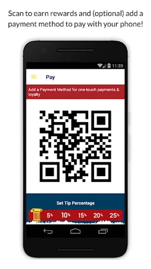 PAY - Pay in-store with your smartphone or tablet. You have the ability to load one or more cards and tip directly from your phone!
