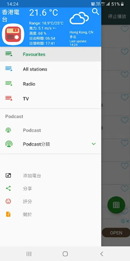 Hong Kong Radio provides extensive radio stations of Hong Kong in one app. You can listen to popular FM radios such as RTHK and Metro. Of course popular internet radio stations are also included.