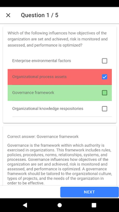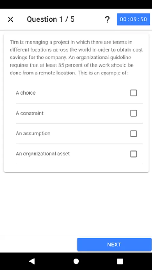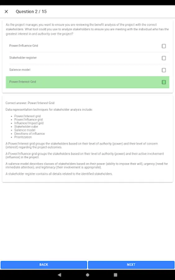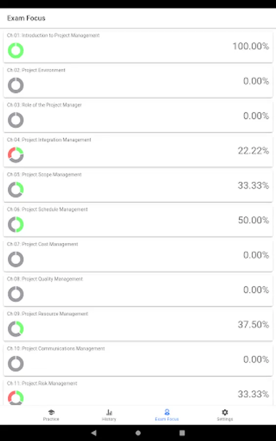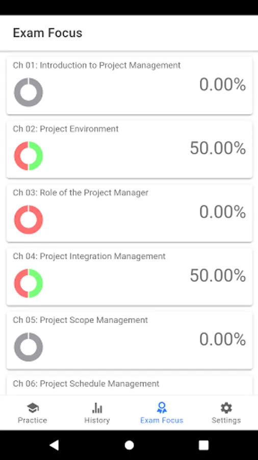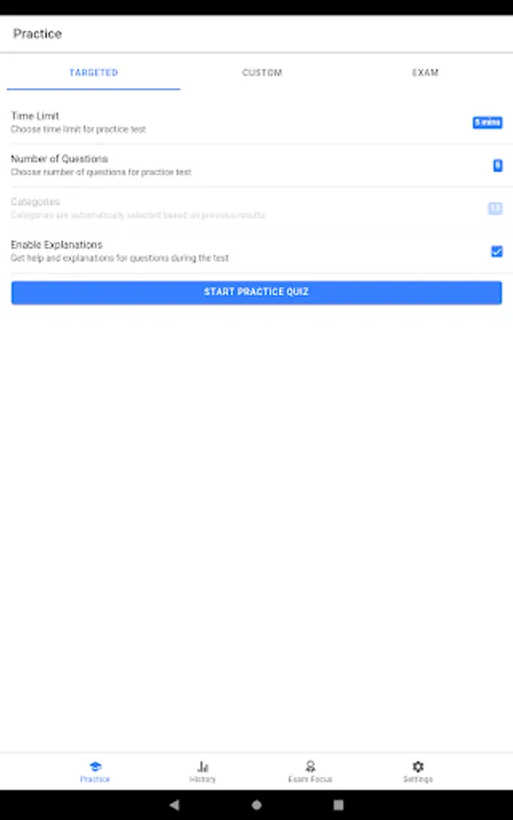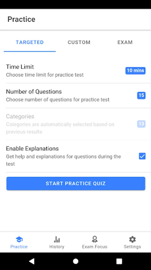 - Choose specific modules to practice, or let the app automatically focus on your weakest performing modules based on previous practice tests