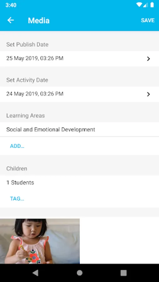 • Tag children to the media and tag respective learning areas