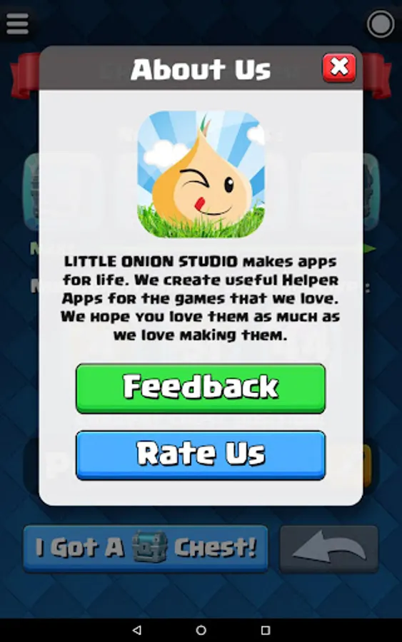 LITTLE ONION STUDIO makes apps for life. We are fans of Clash Royale and we only create useful helper apps for the games that we love. We hope you love them as much as we love making them. If you have any comments, suggestions or questions, please feel free to contact us at little.onion.studio@gmail.com. Thank you!!