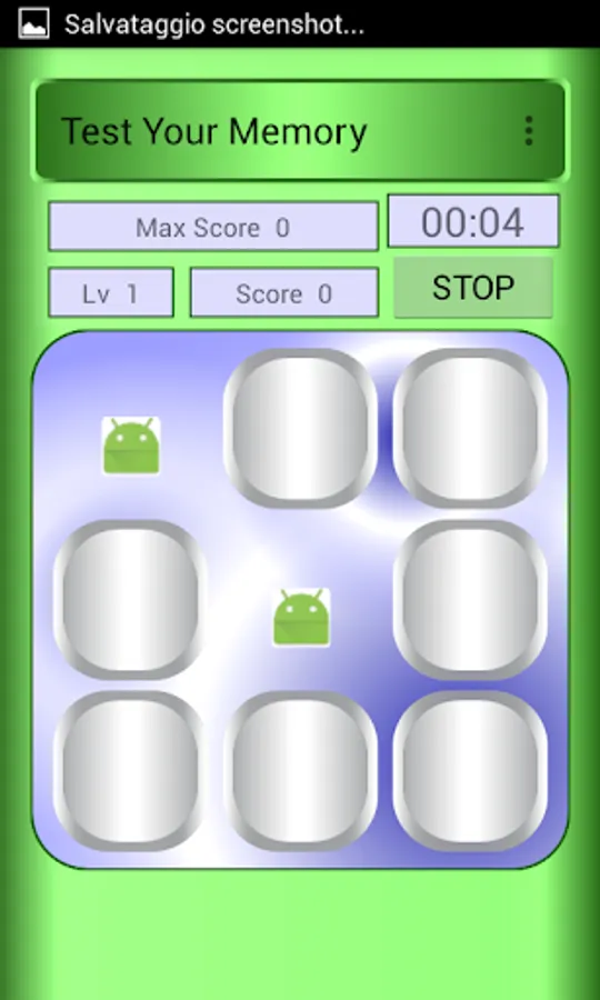 Start the timer, memorize the position of Android's robots under the buttons, stop the timer (less time you spend more points you gain) and choose the right buttons.