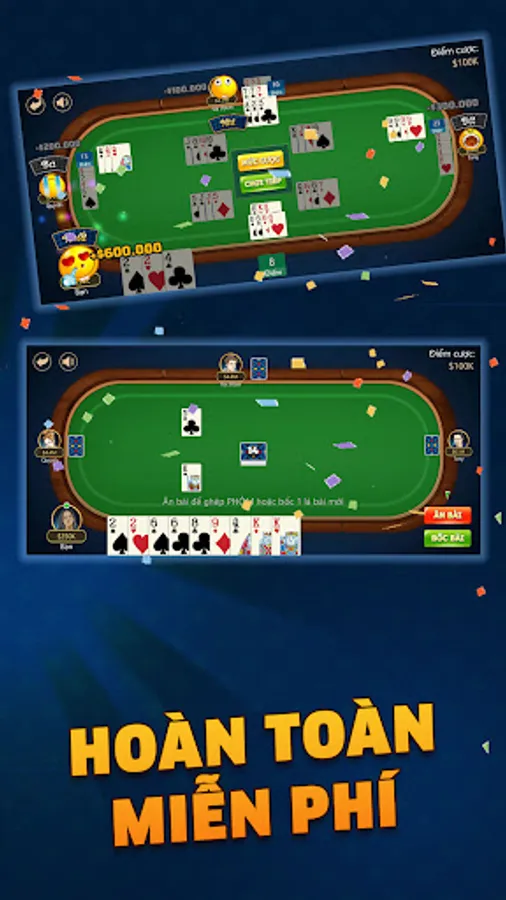 👉 Phỏm tá lả miền bắc đánh với máy với 4 người chơi cực kỳ thông minh, rất là bánh cuốn luôn.