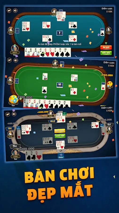 👉 Giao diện đánh bài phỏm cực đẹp, dễ nhìn dễ hiểu.