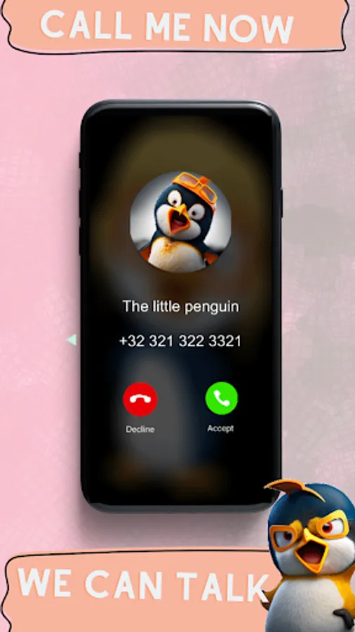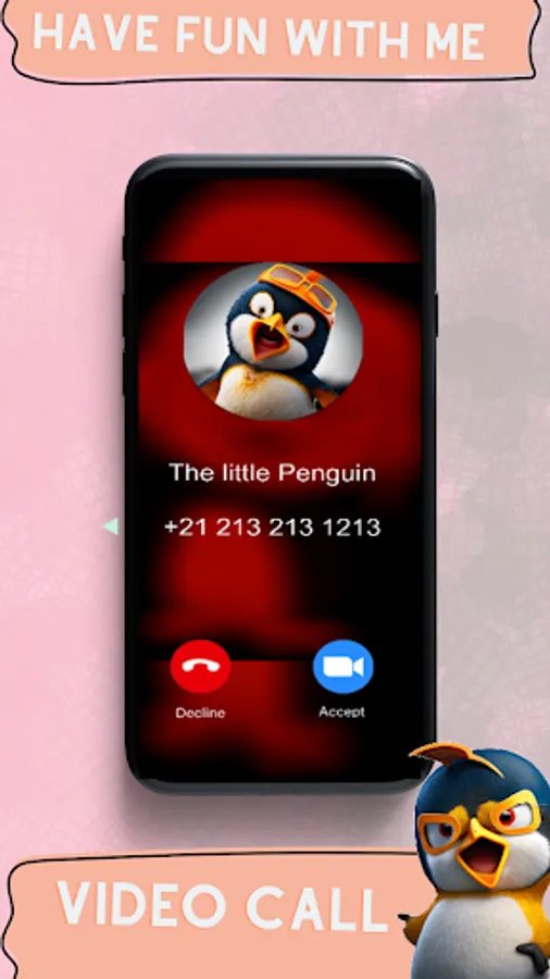 If you like chat call with penguin now can you prank your friends, and make a wonderful surprise to your family, you have a list of contacts can you make calling voice or live chat video with many charaters like poro rocon and penguin with his number phone like a real call .