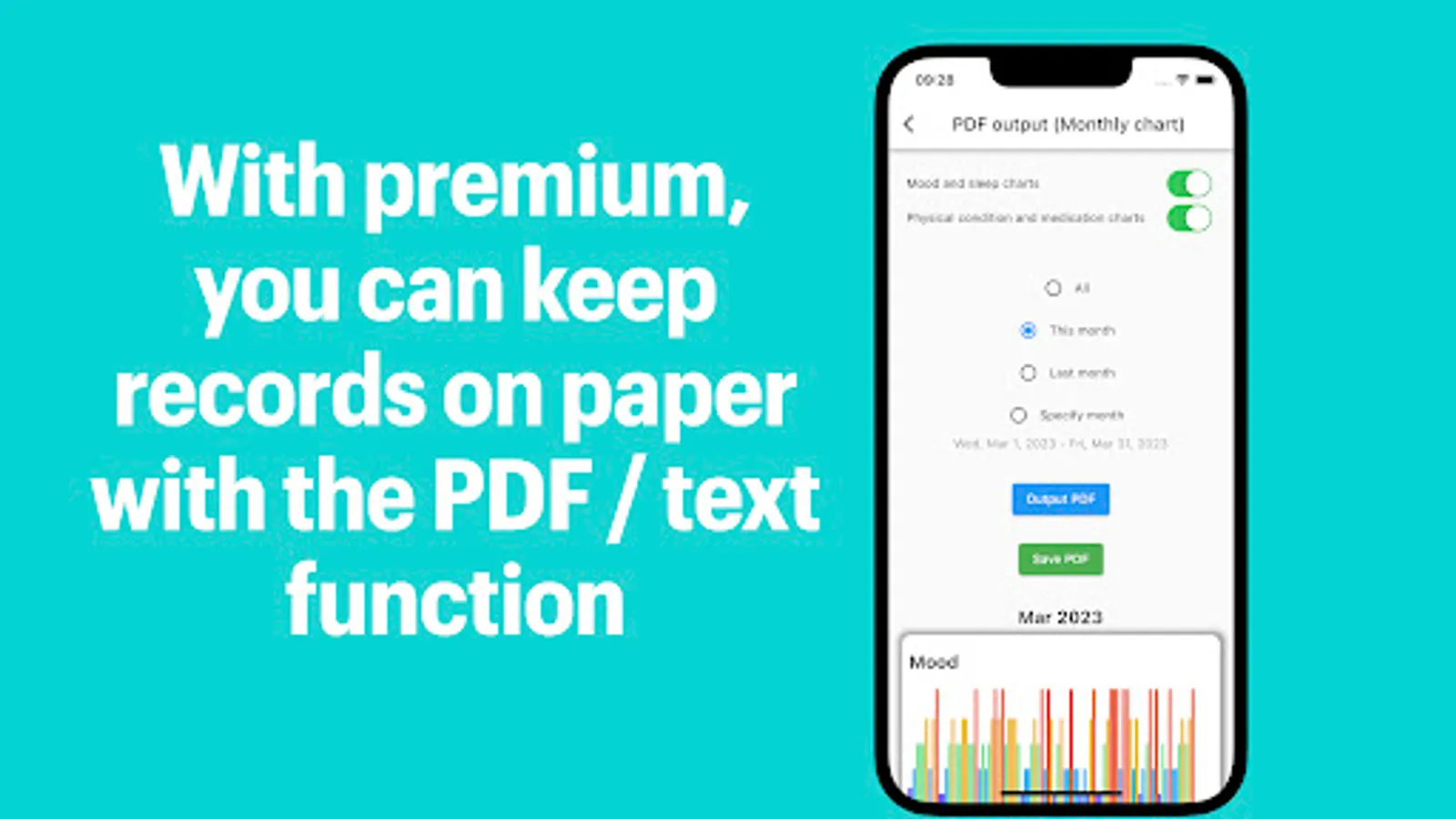 PDF output (Graphs by month. Available on iPhone with iOS 15 or later. )