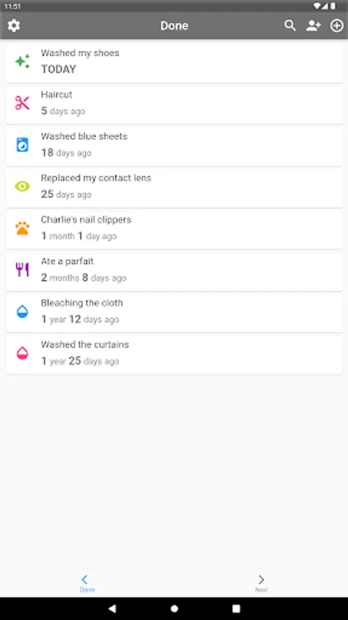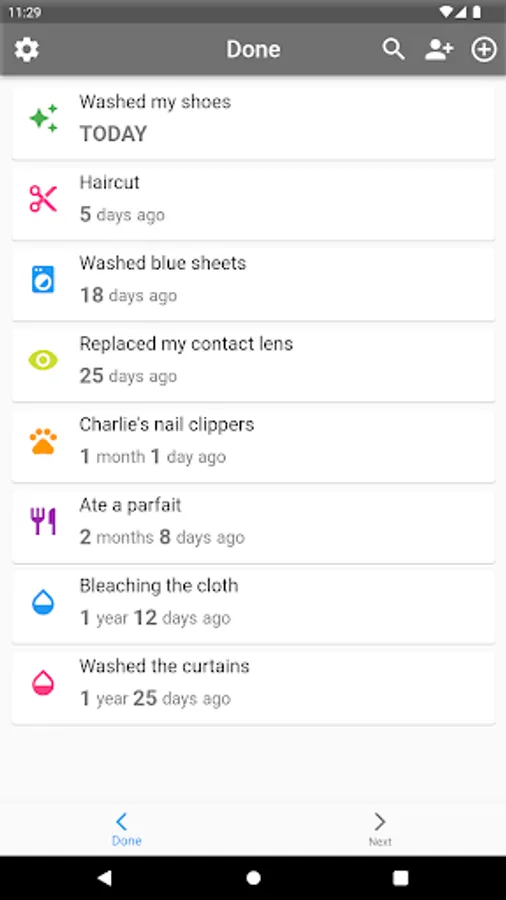 - You can easily add today's date to the completed date by swiping the item in the "Done" list to the left.