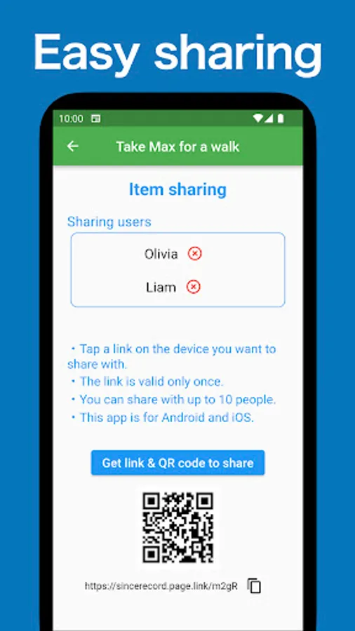- Easy sharing with QR code or link