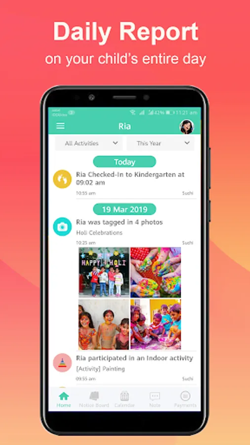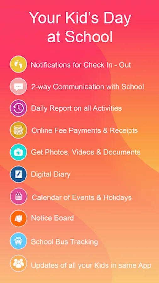 • Digital Notice Board: You can now view the digital Notice board from anywhere. All the notices for your child’s programs are right there in your mobile now.