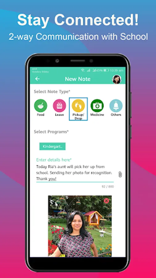 • Write a Note to School: You can write a note to School / Teacher and attach photos and docs as needed. You ‘ll get notified as soon as you get a response from the school teacher.