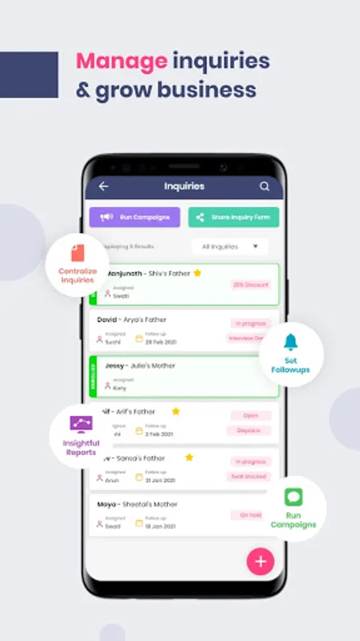 • Digitized Admission Process through sharing of digital enquiry forms with parents