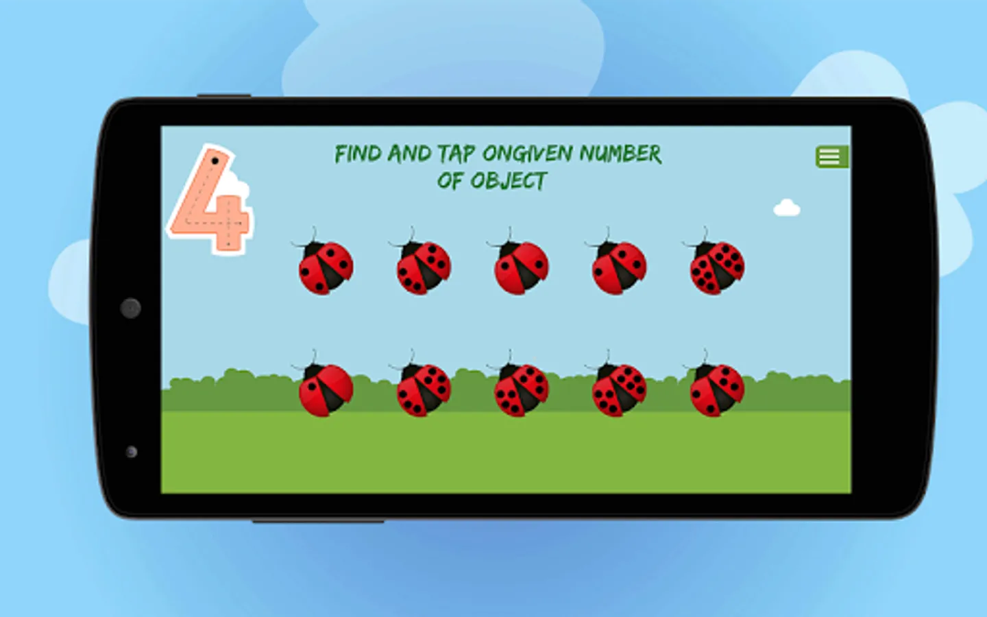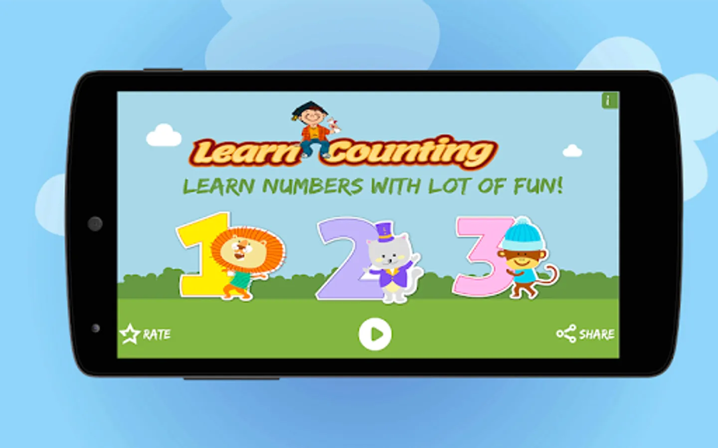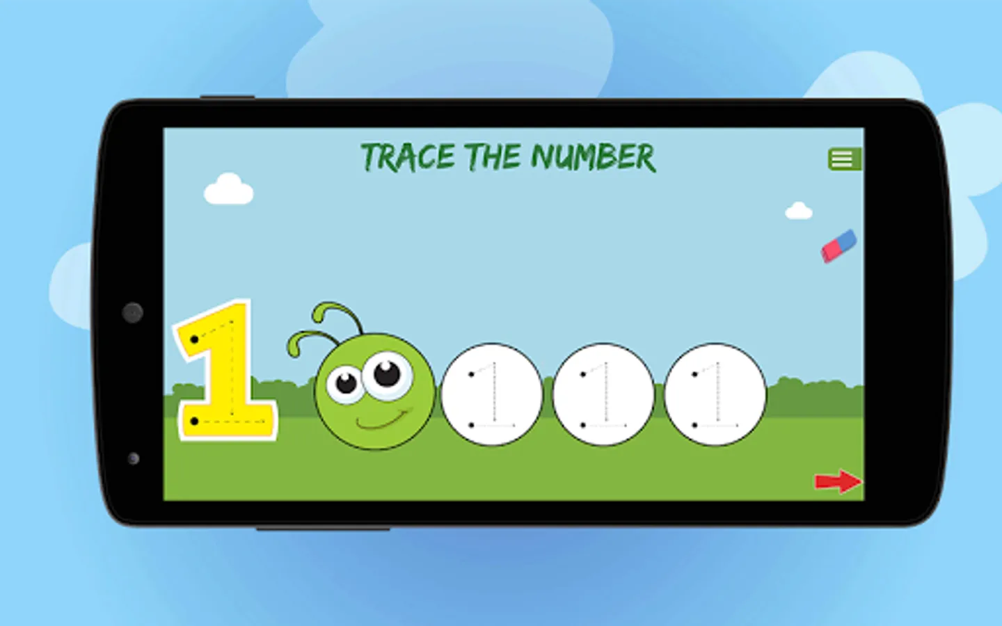 Install this simple and interactive app in your Android device and start playing with numbers. Tap on the numbers from 1 to 10 one by one. Each number has 5 different activities which help kids to learn counting and tracing the numbers.