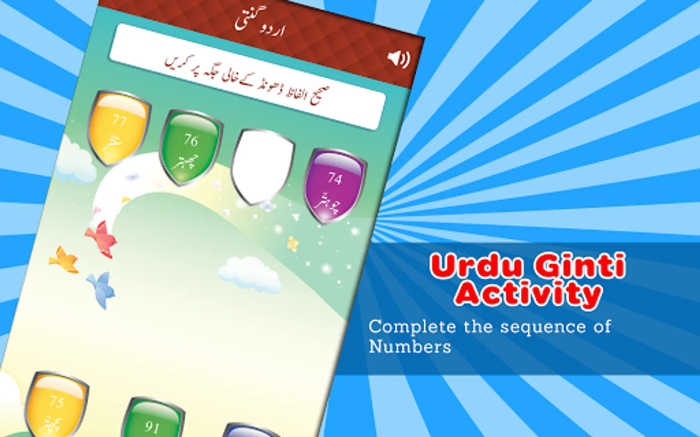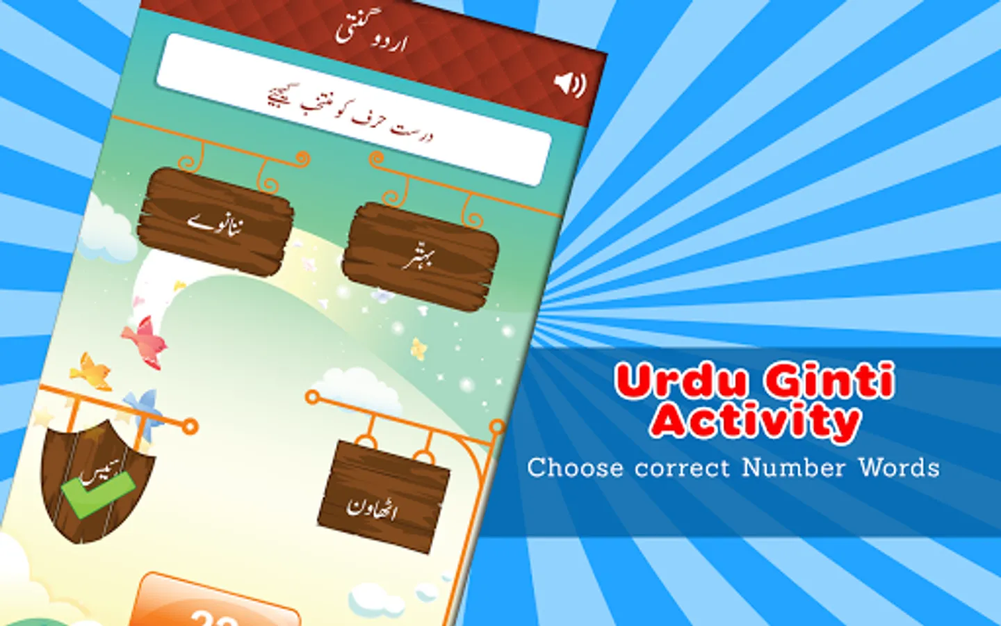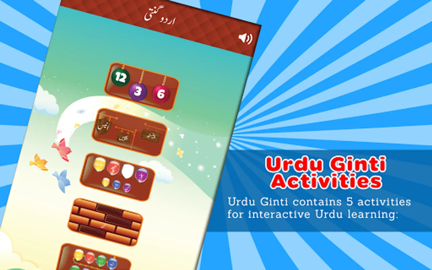 Urdu Ginti contains 5 activities for interactive Urdu learning: