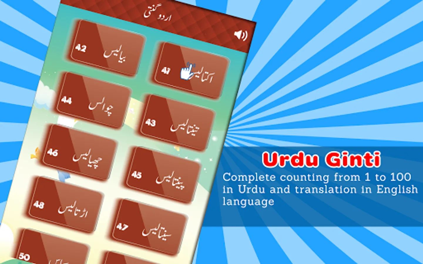 This application is suitable for kids from 3 to 7 years of age, who are in the pre-nursery and kindergarten class. This application is also beneficial for students and adults who wants to learn counting in Urdu.