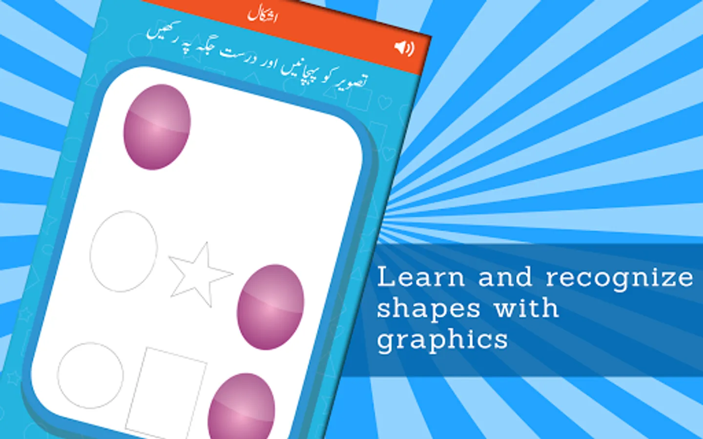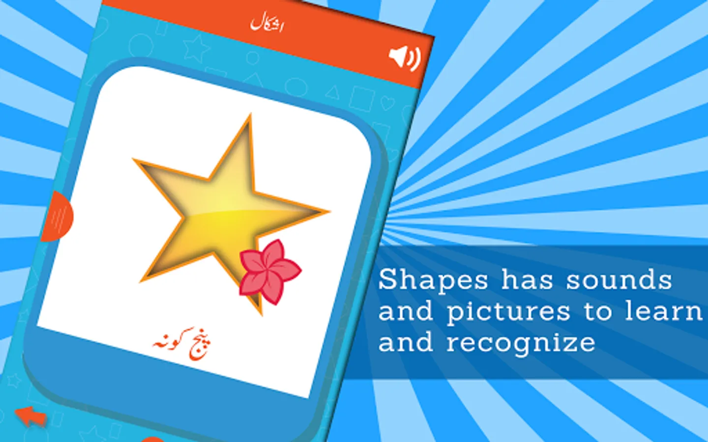 This application is suitable for kids from 3 to 7 years of age, who are in the pre-nursery and kindergarten classes. This application is also beneficial for students and adults who want to learn about shapes and colors in Urdu