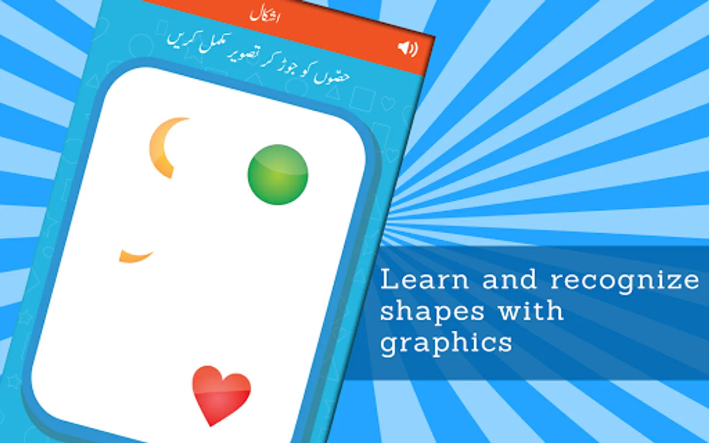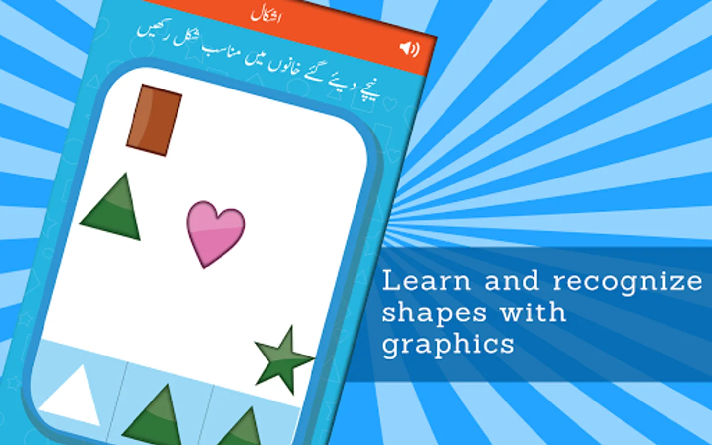 - Shapes presents nine different shapes in Urdu including Moon, Heart, Rectangle, Star, Triangle, Oval, Diamond, Circle, and Square
