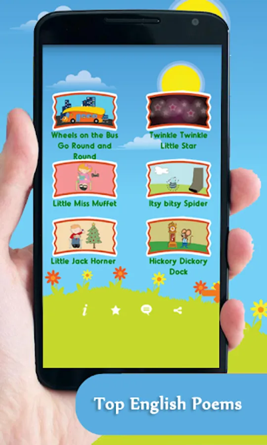 Kids English Poems app has 10 famous and educational poems presented with different scenes. All the familiar and best loved poems in English language are delightful and charming for your little ones.