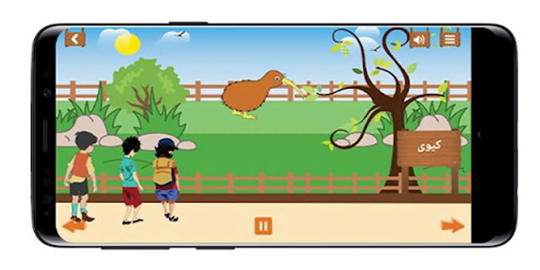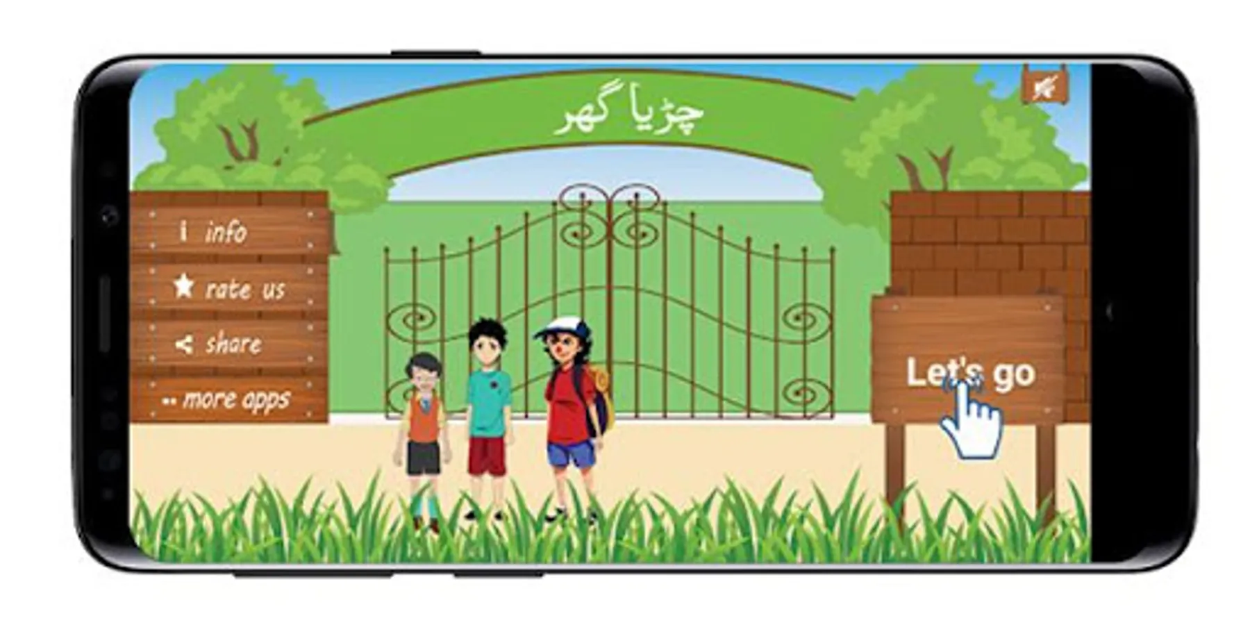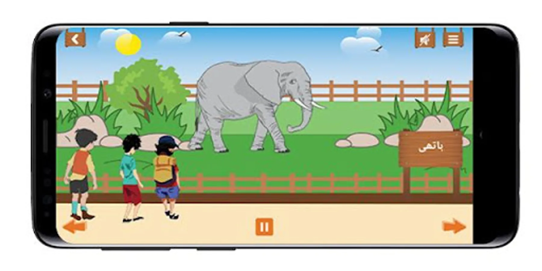 The user has the choice to choose the visiting option of the zoo. A total of 10 species in the selection are listed on the right side for selection, else it can be navigated in a described manner. It shows the picture of that object, with colorful background and catchy music. The description of each item is in the Urdu language, making it easy for Pakistani kids to understand and enjoy the valuable stuff.