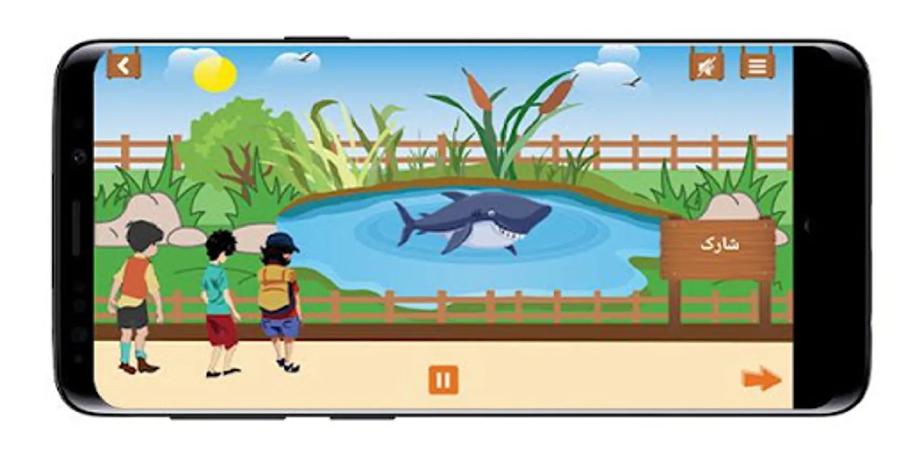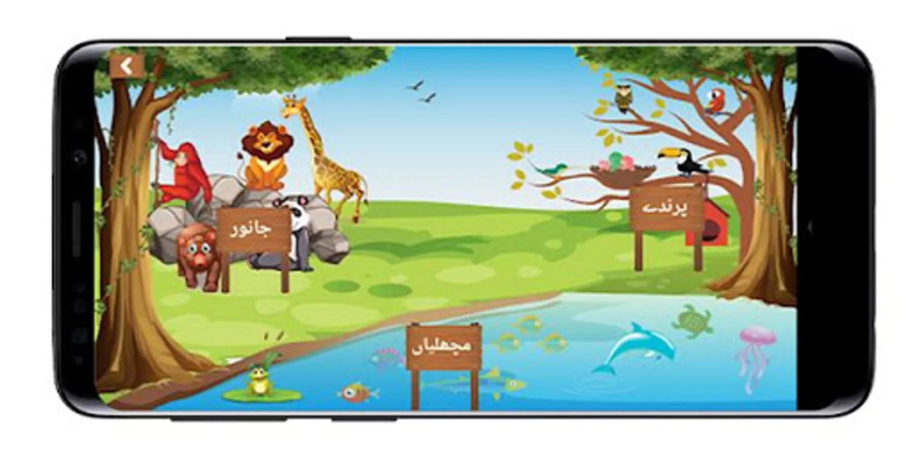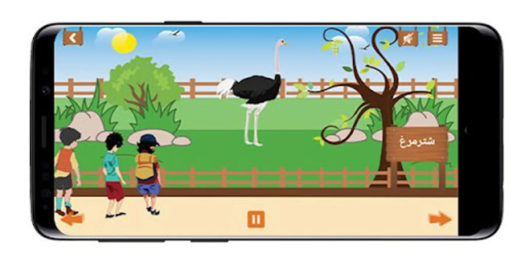 The user has the choice to choose the visiting option of the zoo. A total of 10 species in the selection are listed on the right side for selection, else it can be navigated in a described manner. It shows the picture of that object, with colorful background and catchy music. The description of each item is in the Urdu language, making it easy for Pakistani kids to understand and enjoy the valuable stuff.