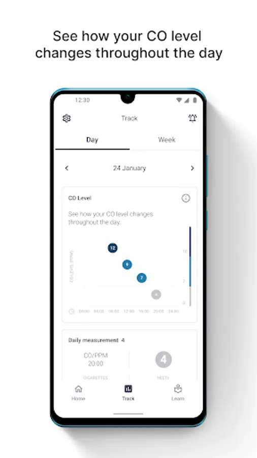 The Gravity Tracker app is intended to be used together with the Gravity CO sensor, which measures the CO level in exhaled breath. The Gravity Tracker app allows you to track, monitor, and learn how your Carbon Monoxide (CO) level is impacted by cigarettes and heated tobacco product consumption