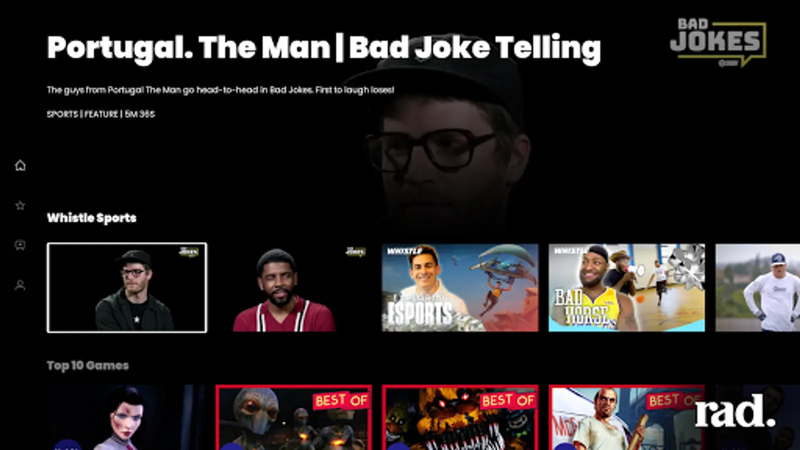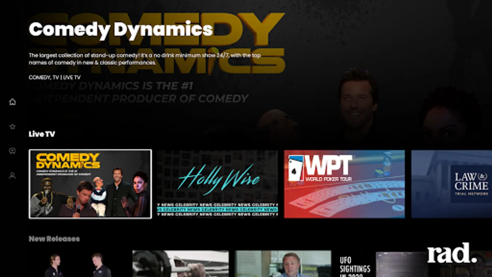 Rad is revolutionizing the digital streaming industry utilizing cutting-edge technologies, enabling instant and transparent payouts. This marks the dawn of a new content era, where fans can directly engage with and support artists. Explore over 50 channels and 200,000 videos across gaming, music, e-sports, comedy and more. On Rad, you can watch videos, shows, and movies on-demand, 24/7 Live TV channels, or immersive VR content across all of our apps and devices from channels like Comedy Dynamics, AXS TV, Impact Wrestling, Bob Ross, Screambox TV and so many more. Collaborating with industry giants like Google, Sony, Disney, Viacom, and NBCUniversal, Rad is reshaping the distribution of content for the modern age.