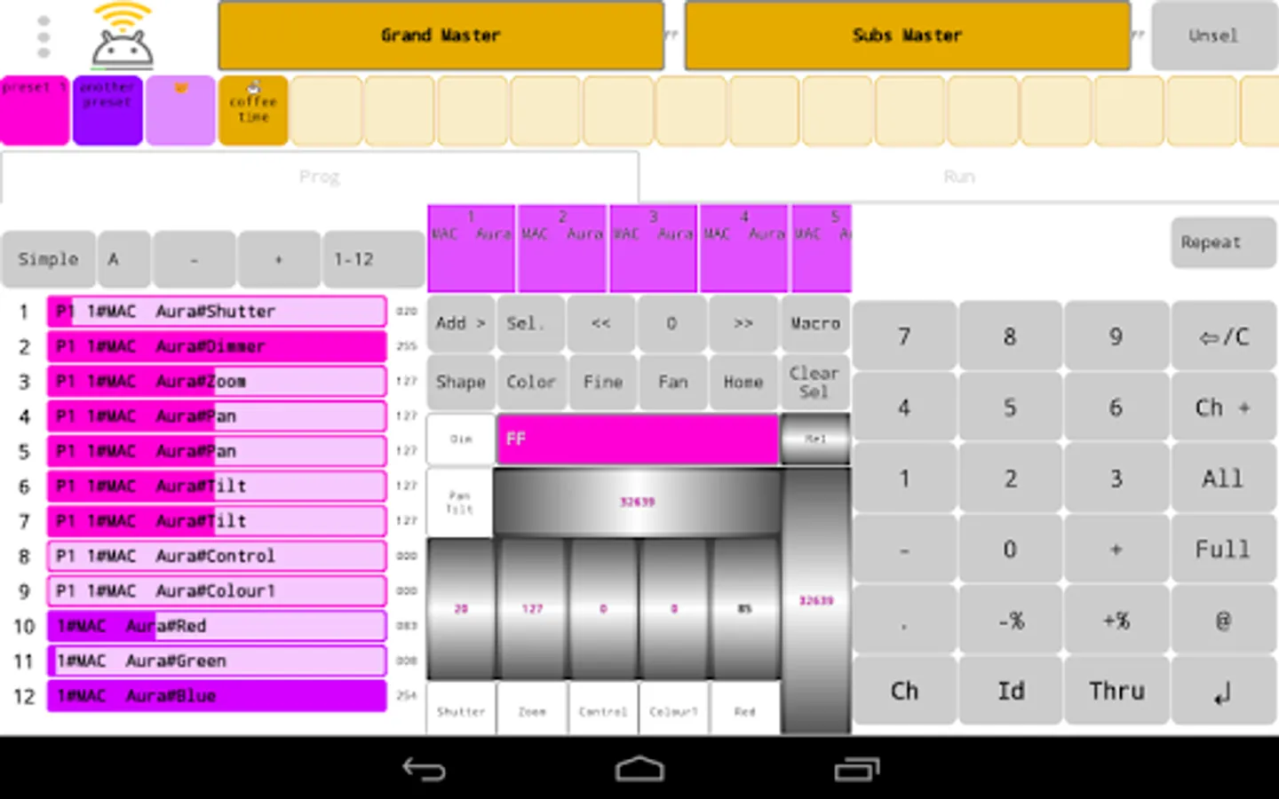This application has been made by a lighting operator for lightings operators so you can expect some of the features on most popular lighting desks:
