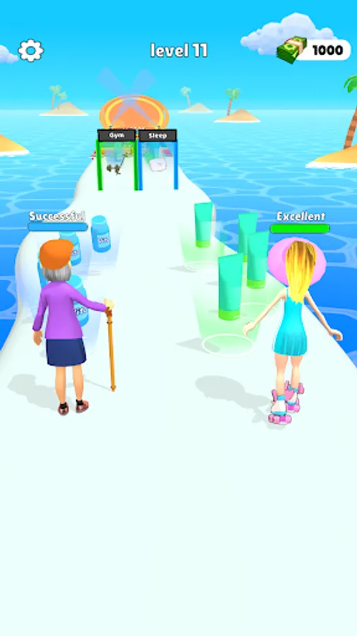 Slide and pass through the correct gates while collecting as much correct items as you can to finish growth journey.
