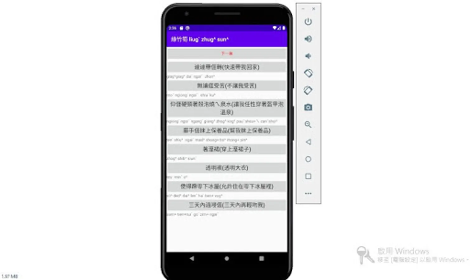 The new sound poems of Hakka dialect in Dapu dialect, as long as you press the gray button, there will be a Hakka dialect in Dapu dialect. If you press the button too fast, there will be no sound. As long as you restart the app, there will be a sound.
