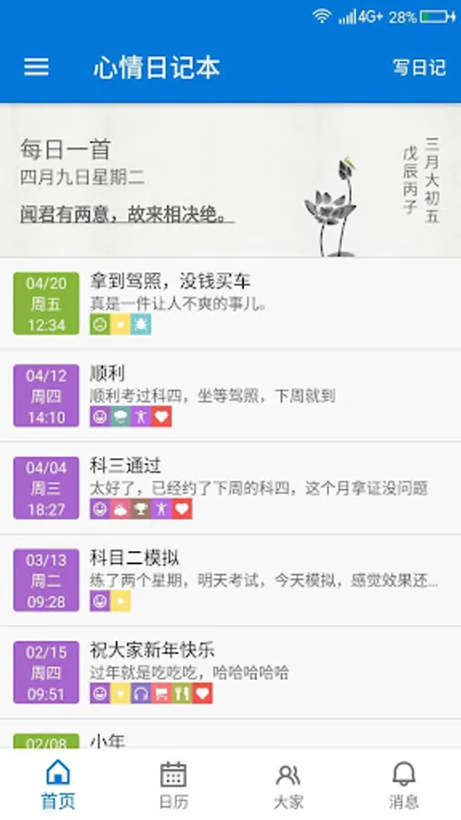 Diary of recording the mood, with image and text, retain the good times.