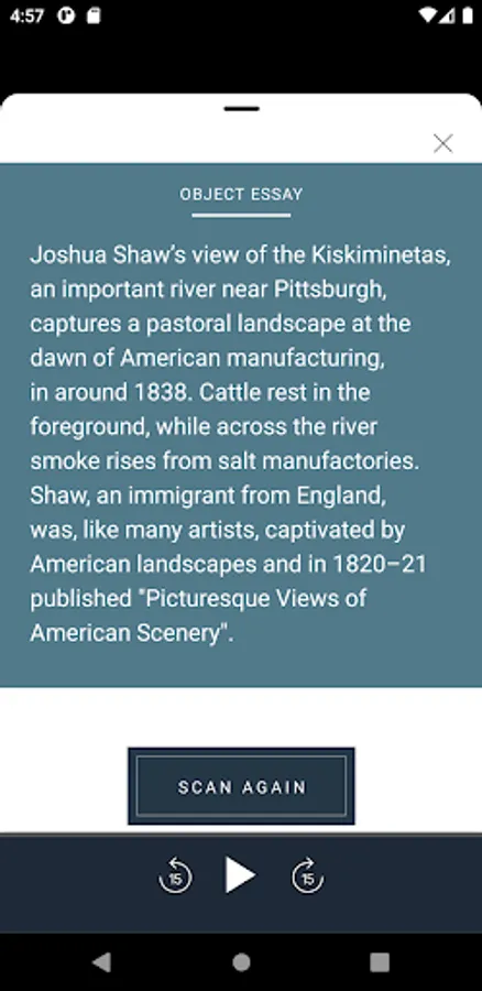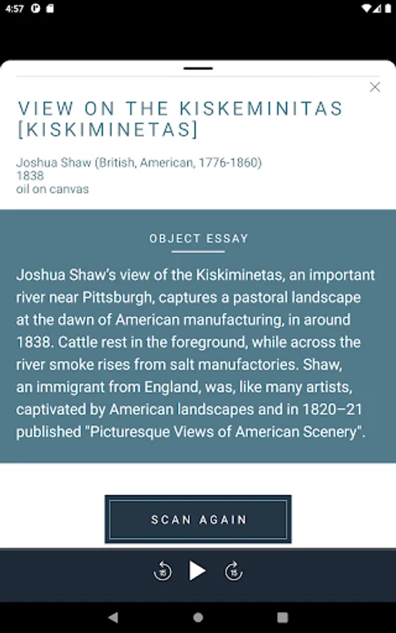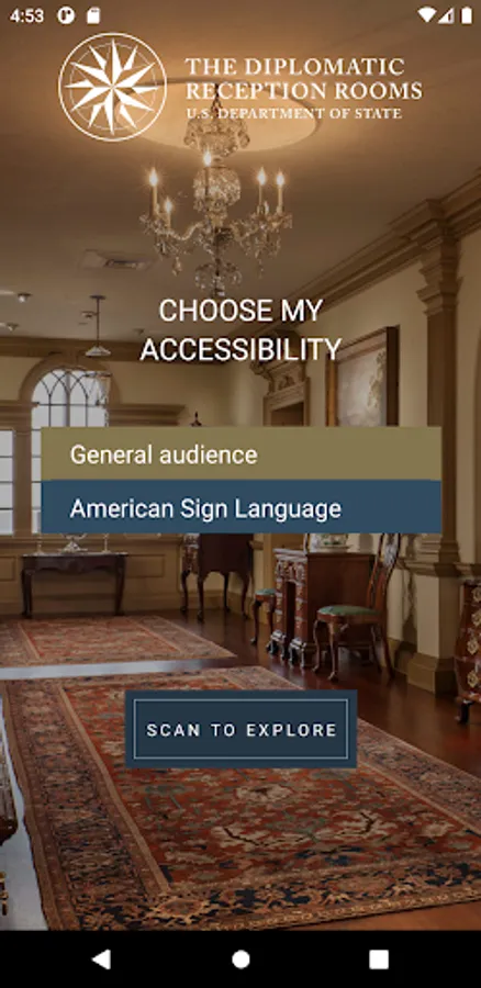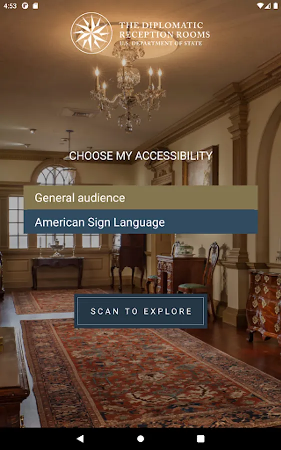 The app allows you to discover artworks in the Diplomatic Reception Rooms. From the app, use the camera to scan the artworks around you and get a description in nine languages, with text-to-speech audio, and American Sign Language (ASL)