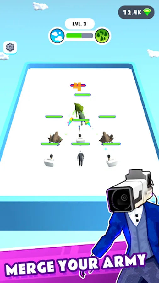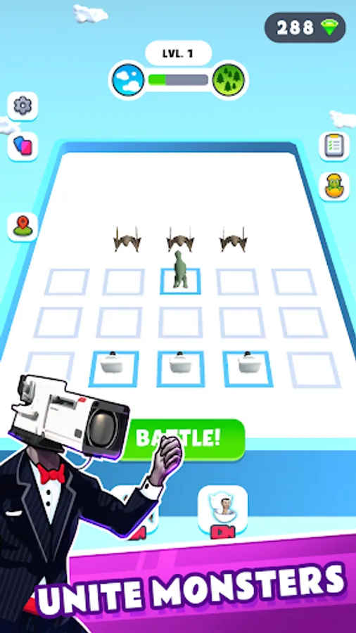 Battle dinosaurs, monsters, skibidi toilet, cameraman, monster toilet, and other creatures, merge army and become invincible in merge master. For everyone who wanted a lot of toilet monsters and more dinosaurs in one game merge master. The important skill to win in Merge Master Toilet Monster is a right placing dinosaurs with cameraman monsters, skibidi toilet. Use your strategy merge master and tactics merge monsters to win the toilet monster battle. Learn how to play merge dinosaurs and monster merge and you will love it! Merge monster giant and get more new ones for monster battle!