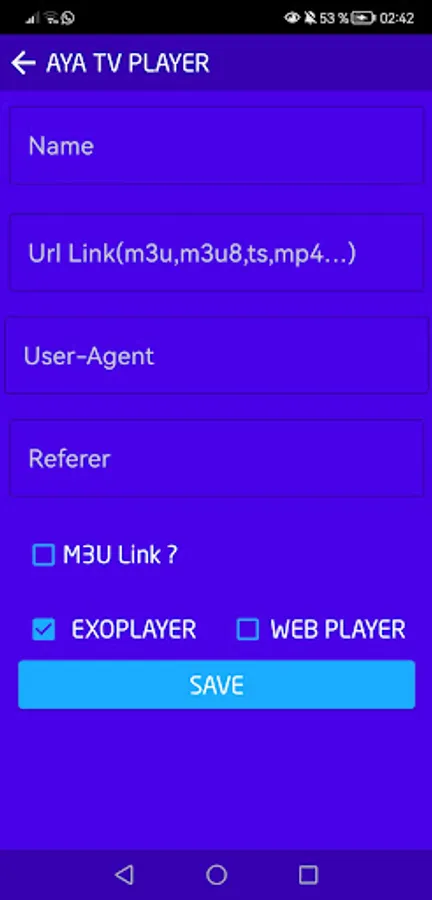 AYA TV PLAYER app is a video player and does not contain any preconfigured channels.