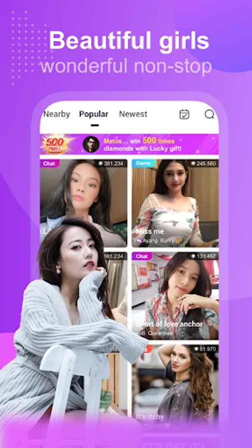 We have an active platform for live broadcasting of singing, dancing, chatting, and outdoor content. The hosts show their talents and hobbies. Here you can find and communicate with hosts who have the same interests and hobbies. Let's become their fans and make friends with them.