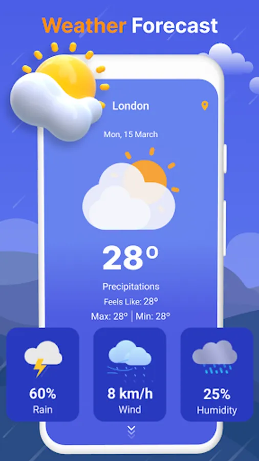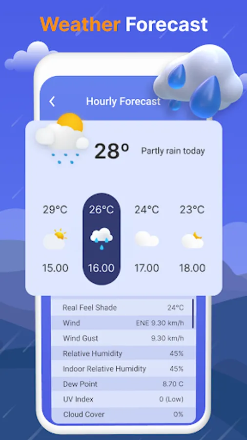 The Weather forecast apps include real-time local and global forecasts, as well as current temperatures in Celsius and Fahrenheit and dawn and sunset times based on city time zones. Weather Forecast App is a weather channel that provides hourly and daily weather updates. The weather app is based on current temperature, humidity, pressure, and wind direction.