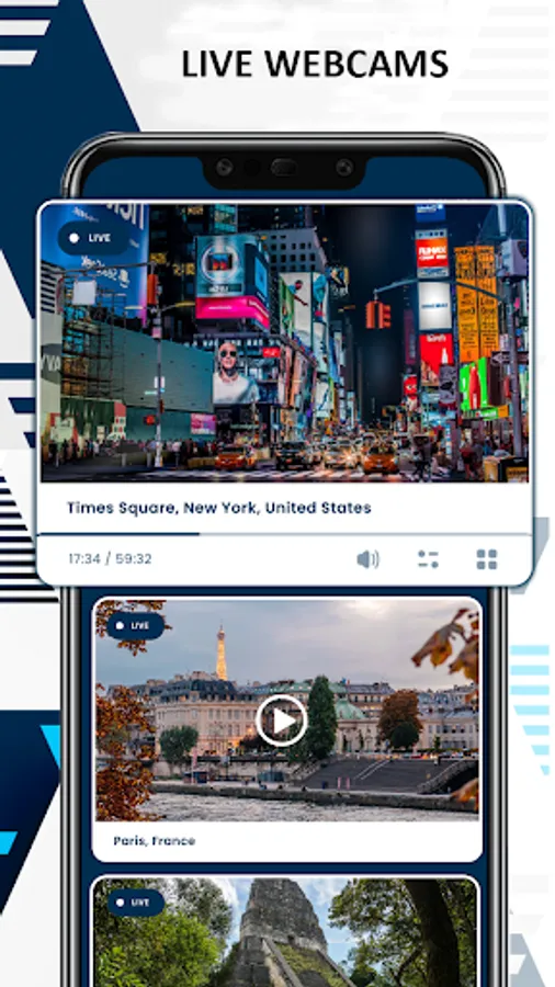 This app shows live web cams, earth cam and live cam drone views of famous cities and space weather and images.