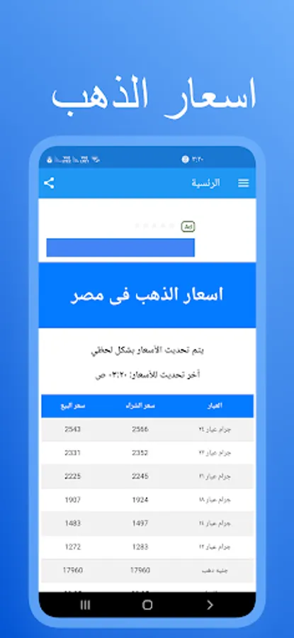 The application of gold prices in Egypt provides you with the latest gold prices in Egypt, including the price of 21 karat gold, the price of 18 karat gold, the price of 24 karat gold, the price of gold in Egyptian pounds against the dollar, and the prices of world currencies,