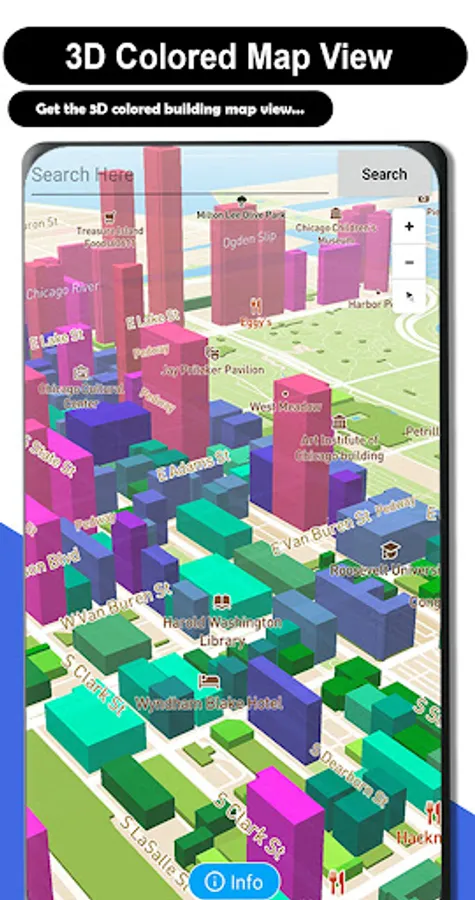 3D building color map will differentiate building colors according to height of building. Height map show details of buildings height. Now you can see maps in your desired language. Multi local language maps will displayed in your selected language. Live world maps can be seen in desired language and you can change language through language settings panel.