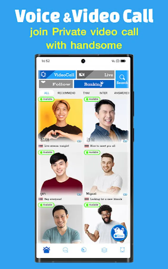 HandsomeCall is a social application full of every style of entertainments with many handsome men or celebrities and net idols in real-time live streaming session or private video call.
