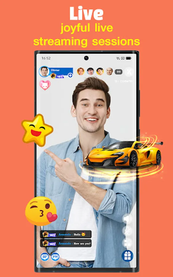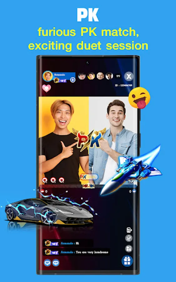 Enjoy duet live session by joining in PK function with friends and sending gifts to your favourite boy to defeat his rival.