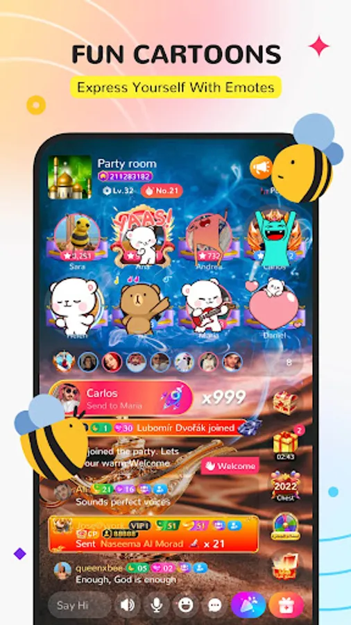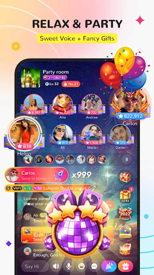 - Browse and join chat rooms with sweet voices from all around the world 🌎