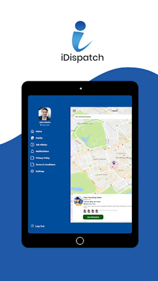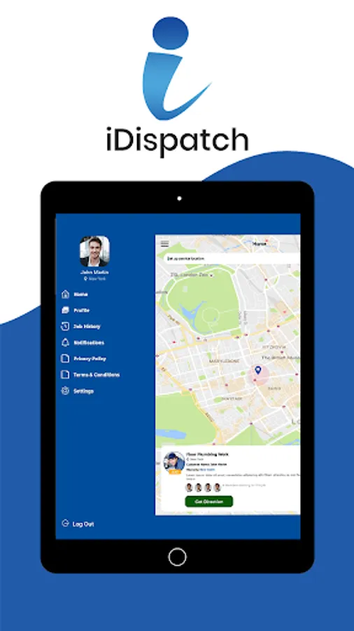 iDispatch, is a mobile application that allows the dispatcher to keep track of the service workers through every step of the process. Easing the workflow for the service worker and allowing the admin to keep track of the service workers progress throughout the job
