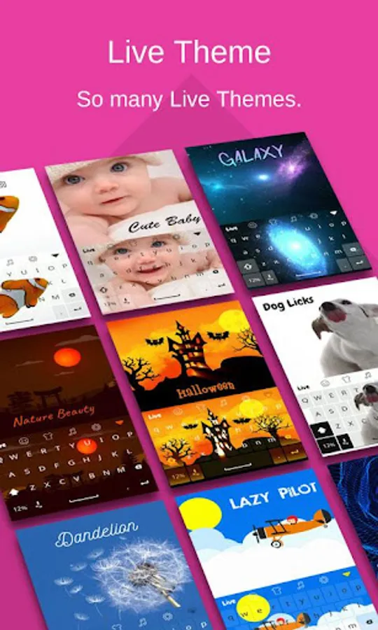 Live Keyboard with animation and Live graphic effects that comes with faster, smoother and accurate typing experience.