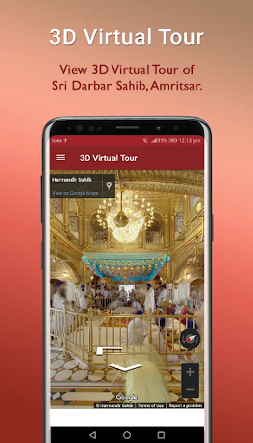 You can see 3D (360°) high quality virtual tour of sri harmandir sahib that lets people experience of exact location. With just tap the way to go and zoom the place in darbar sahib. These immersive, virtual experiences inspire greater confidence among prospective guests.