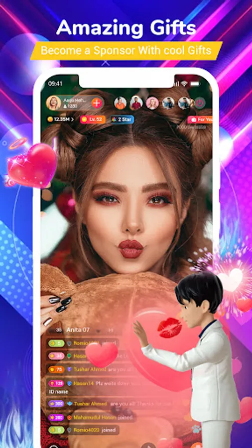 Broadcaster makes streaming videos, men & women come to see how they chat or sing online. If you are impressed, you can give virtual gifts to friends. We are not a flirt dating app and we Don't Allow any adult or 18+ content on the app