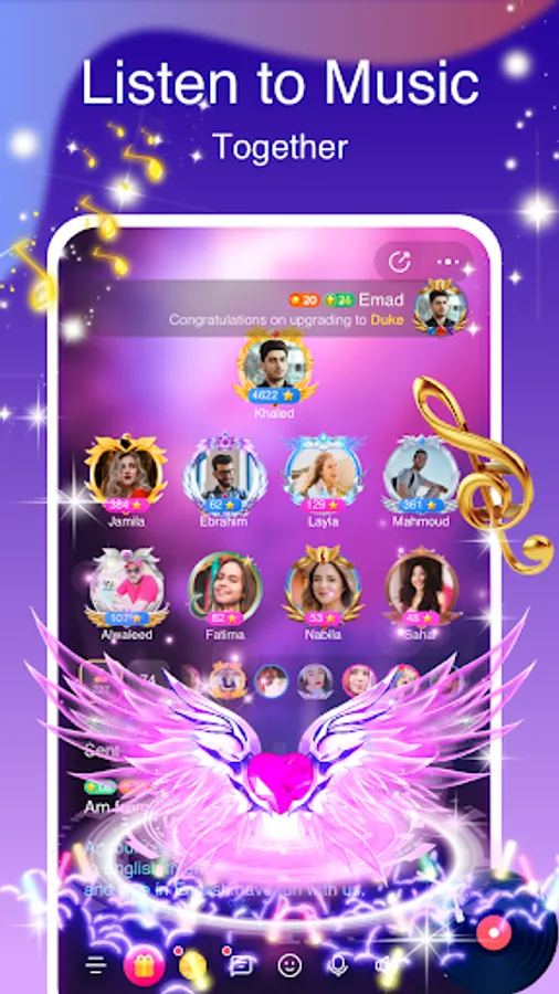 - Share your feelings, interests, listen to music or broadcast with Real-Time voice chat.