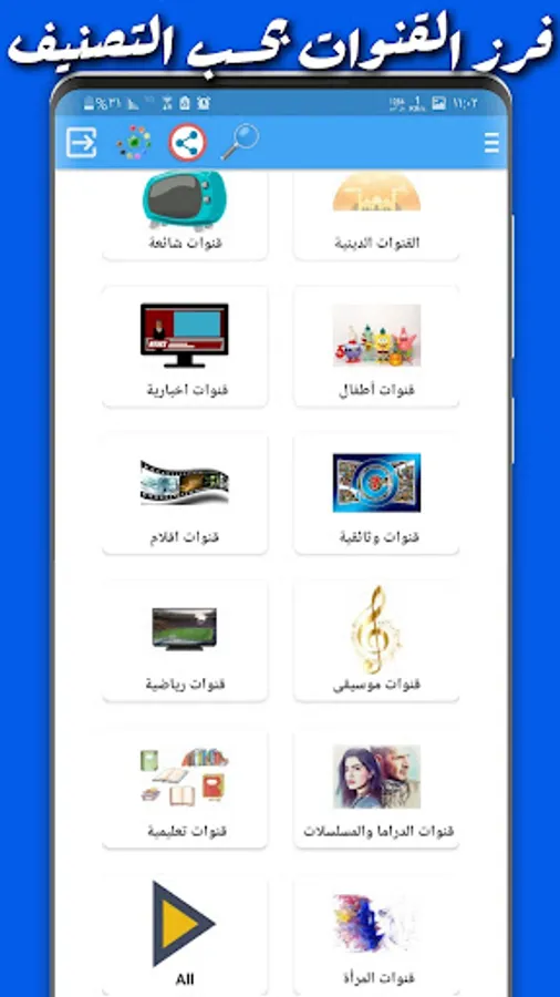 Live TV enables you to watch the live broadcast of all Arab satellite channels.