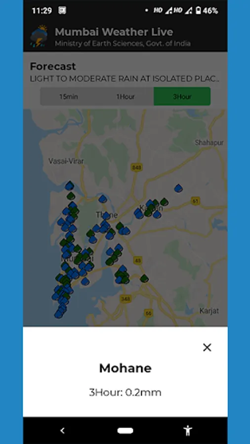 Mumbai Weather Live apps is for monitoring the rainfall in all Mumbai locations. and live 15 min rainfall will show with temperature, humidity, windspeed and wind direction.