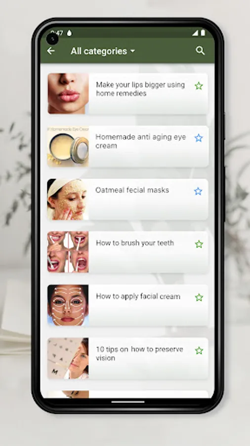 In this application you will find a lot of necessary information that will help you taking care of your face, body and hair.